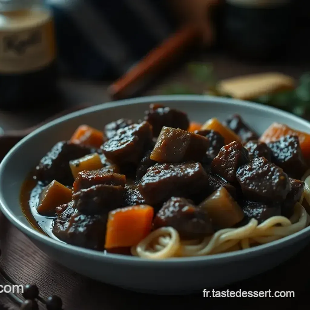 Lorsque vous mijotez votre boeuf, la clé est la patience. Laissez-le cuire à feu doux pendant au moins 2 heures pour que la viande devienne tendre et que les saveurs se mélangent harmonieusement.