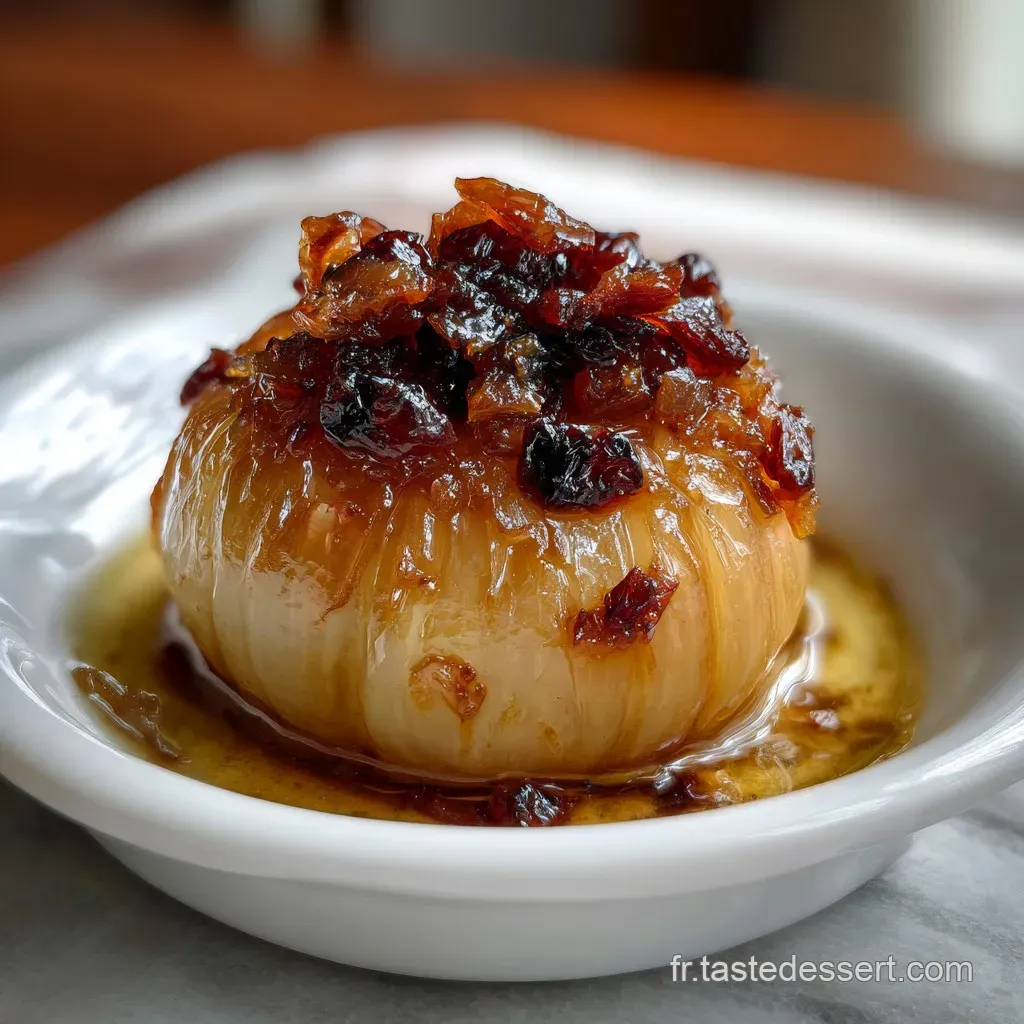 C'est un condiment riche et sirupeux, obtenu par cuisson très lente. Le processus transforme les oignons piquants en une préparation fondante, aigre douce, idéale pour accompagner viandes ou fromages.