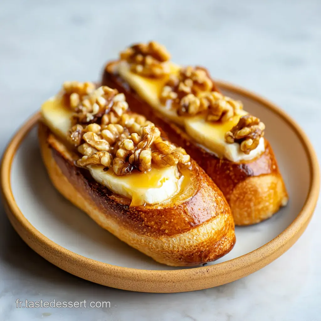 Découvrez la Recette de Crostini au Brie, Miel et Noix Élégance en Bouchée, un délice raffiné à tester absolument. On oublie les toasts mous et fades.