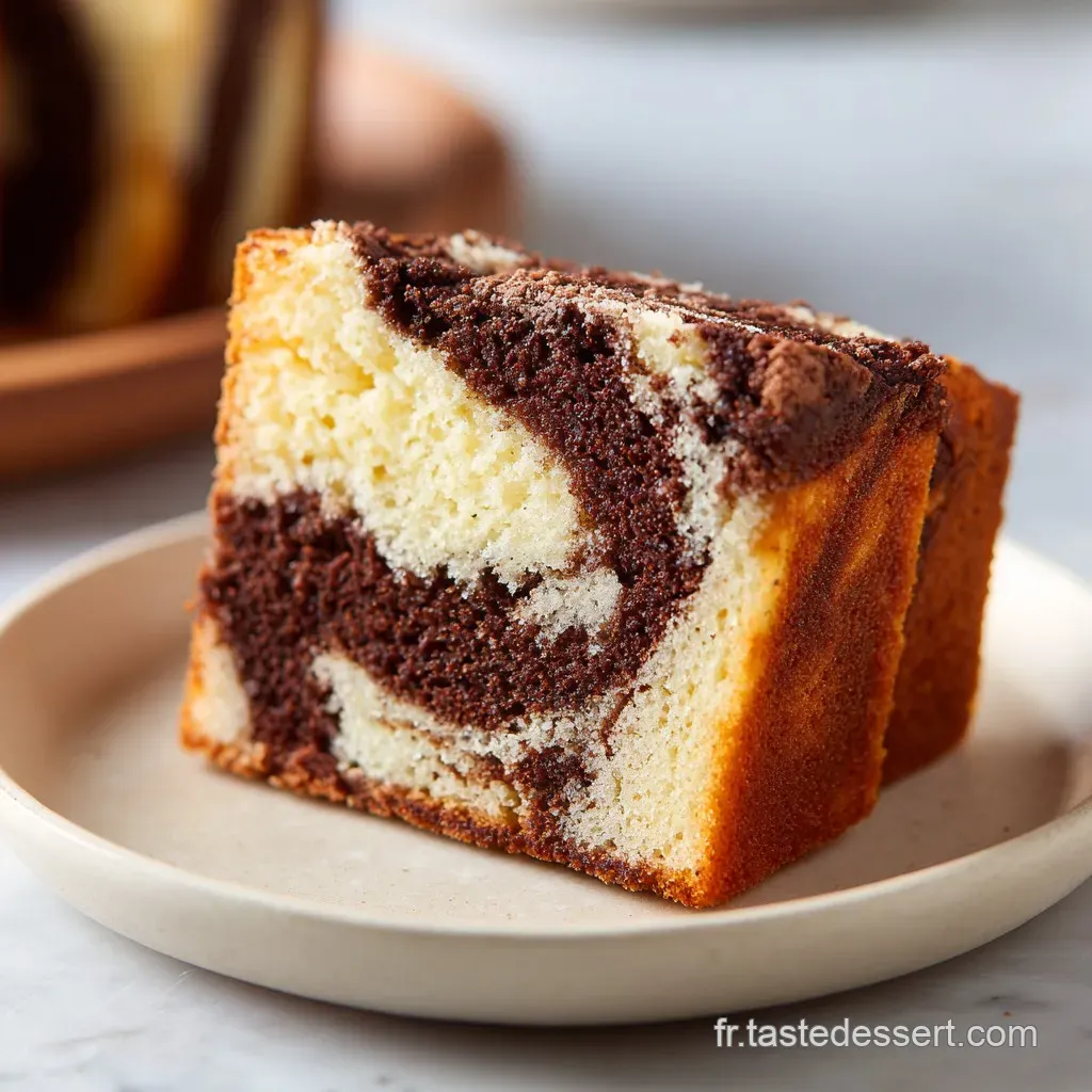 Servir une tranche de ce marbré avec un grand verre de lait froid est le plaisir ultime de l'enfance. Mais pour un dessert plus sophistiqué, une chantilly maison très peu sucrée ou une compotée de fruits rouges apporte l'acidité nécessaire pour balancer la richesse du cacao.