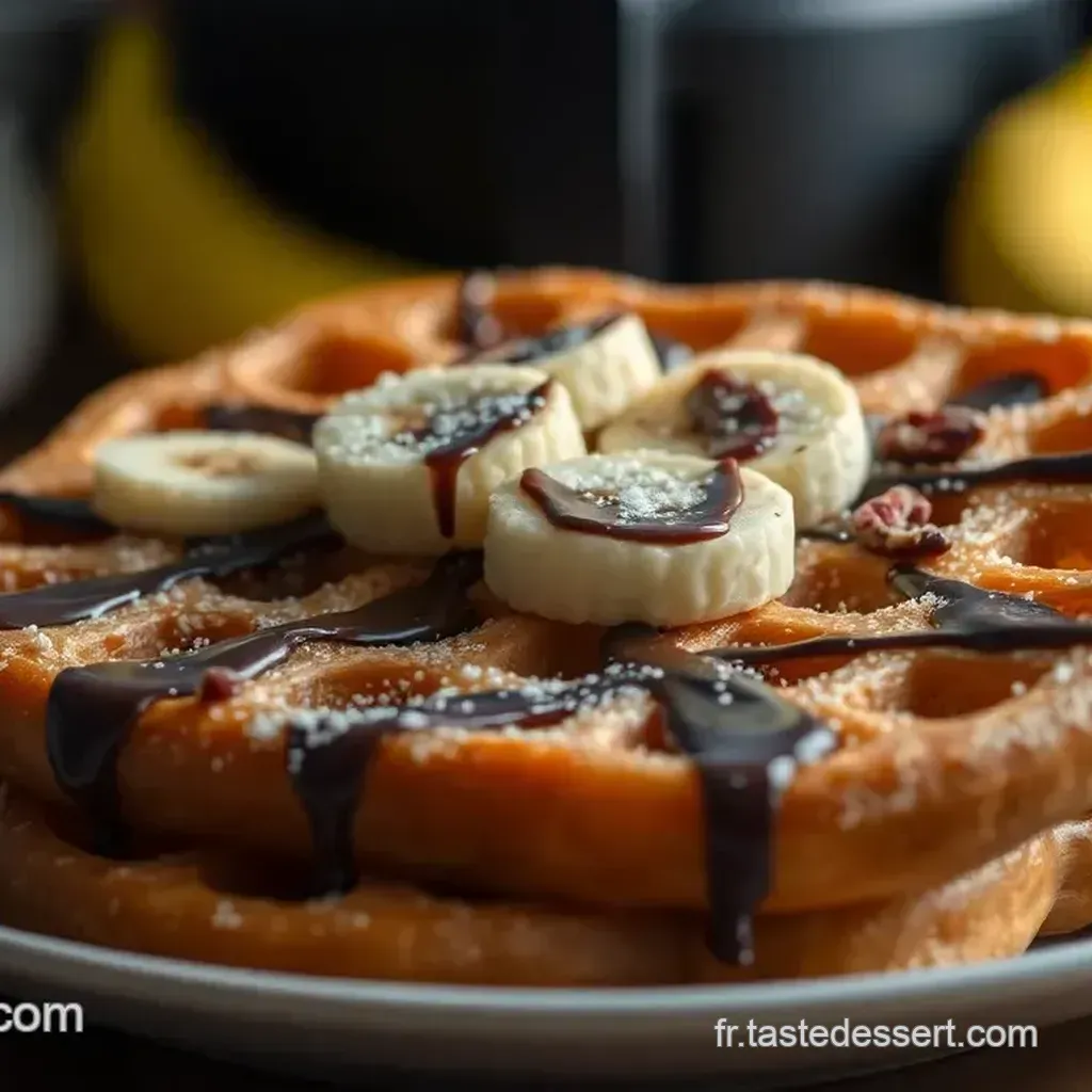 imaginez une gaufre croustillante, garnie de bananes moelleuses, de noix croquantes, et généreusement arrosée de chocolat noir fondu.