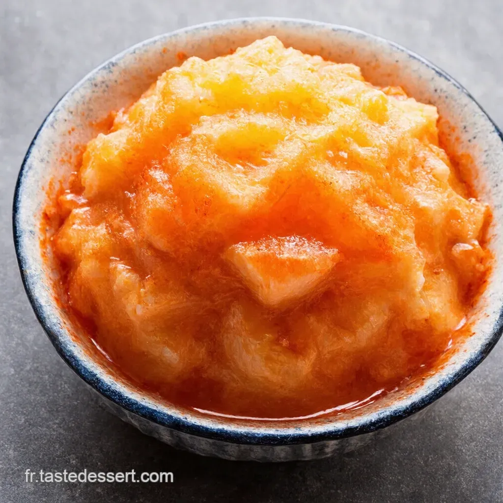 Cette recette de glace au kimchi s'inspire des créations audacieuses de chefs comme Henri Guittet. On prend le côté piquant et fermenté du kimchi , un ingrédient phare de la cuisine coréenne, et on le transforme en glace insolite .