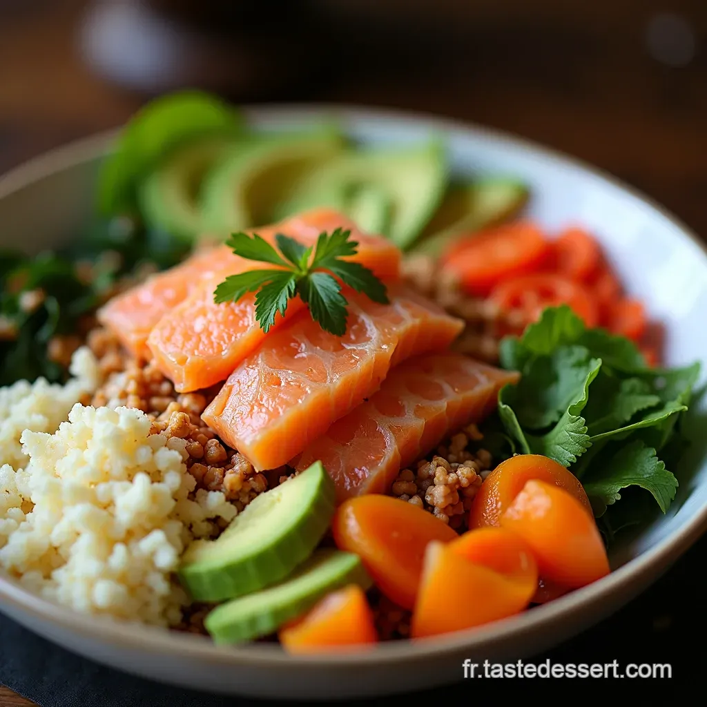Notre recette met l'accent sur la qualité : le saumon riche en oméga-3, l'avocat pour ses graisses saines, et le riz, socle énergétique. C'est la quintessence des Recettes saines Poke Bowl , où l'on peut ajuster chaque composant selon ses besoins.