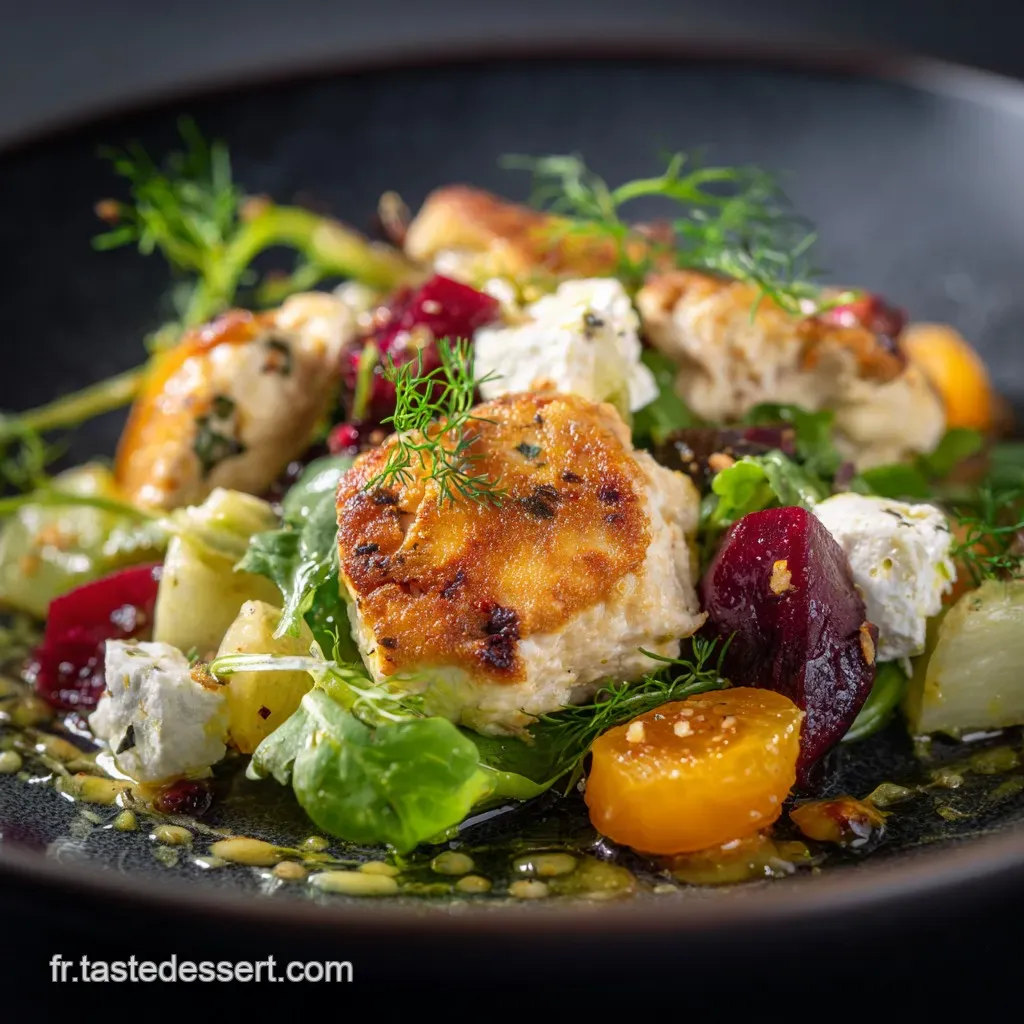 Note du Chef : Ne servez JAMAIS cette salade si tous les éléments sont froids. La chaleur est l'ingrédient invisible qui lie toutes les saveurs et fait exploser le chèvre.
