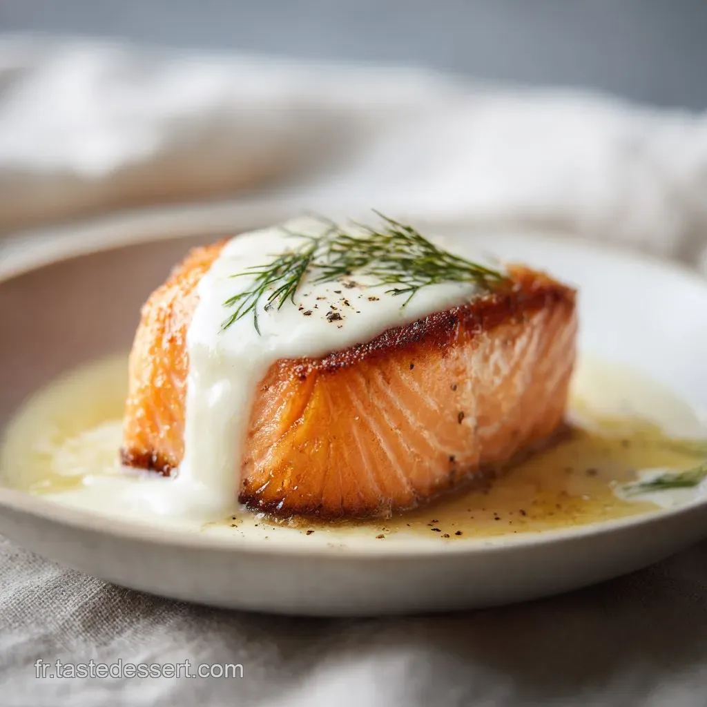 Conseil du Chef : Ne retournez jamais le saumon ! La cuisson unilatérale garantit une chair nacrée et une peau qui ne ramollit pas au contact de la sauce.