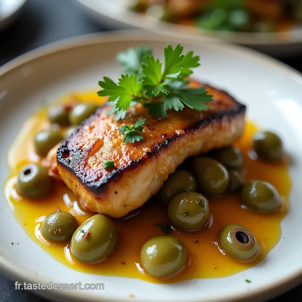 Imaginez : des morceaux de veau fondants, un jus réduit à base de vin blanc et de tomate, le tout ponctué par les notes vibrantes des olives, qu'elles soient vertes ou noires.