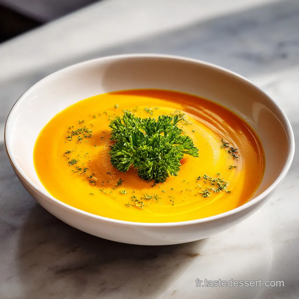 Parce qu'on mange aussi avec les yeux, ne néglige pas la présentation. Cette soupe a une couleur orangée magnifique qui mérite d'être mise en valeur. Utilise des bols profonds de couleur sombre ou en céramique artisanale pour faire ressortir la chaleur du plat.
