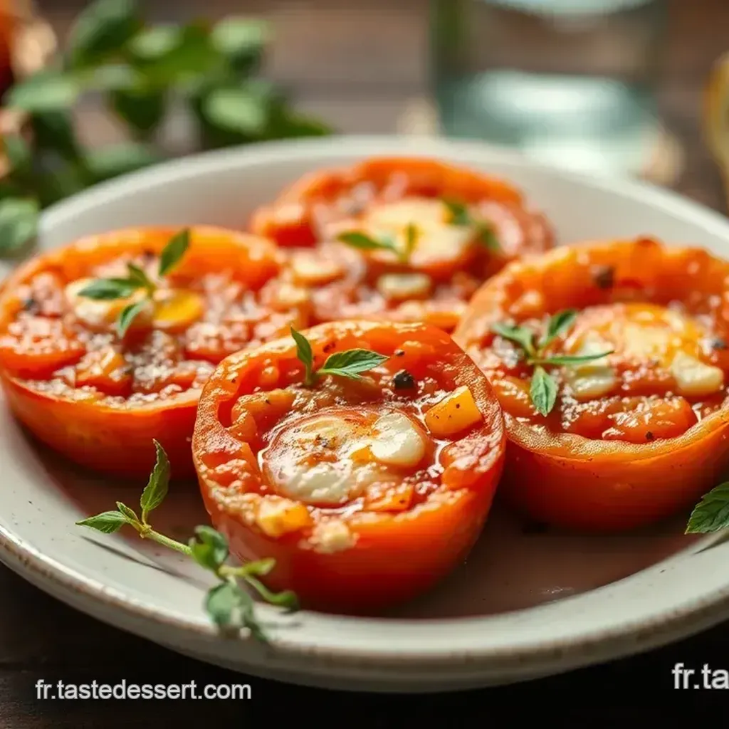 Franchement, la présentation, ça compte! pour impressionner tes convives, pense à disposer joliment tes tomates farcies feta airfryer sur une assiette avec quelques feuilles de basilic frais.