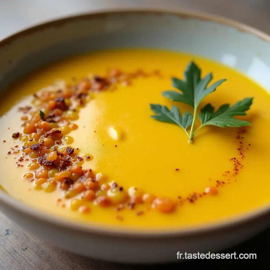 Le Velouté de Lentilles Corail au Curry est l'incarnation même de la cuisine qui prend soin de vous. Il marie la douceur veloutée des légumineuses à l'éclat des épices orientales, le tout sans exiger des heures devant la cuisinière.